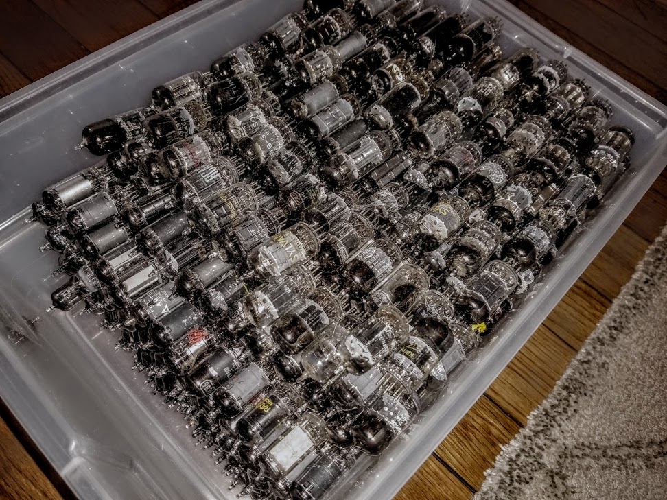 We're not out of the woods though. With many of the markings removed, we'll also have to identify each tube, where the markings have rubbed off, for type (an effort that will undoubtedly take a long time and will likely be the source material for another article here). Then we'll have to label them correctly so that we can test them. We'll test to identify the good ones and trash the bad ones, of course. Once all of that is done, finally, we'll be able to pack them into boxes and warehouse them for eventual use in projects.