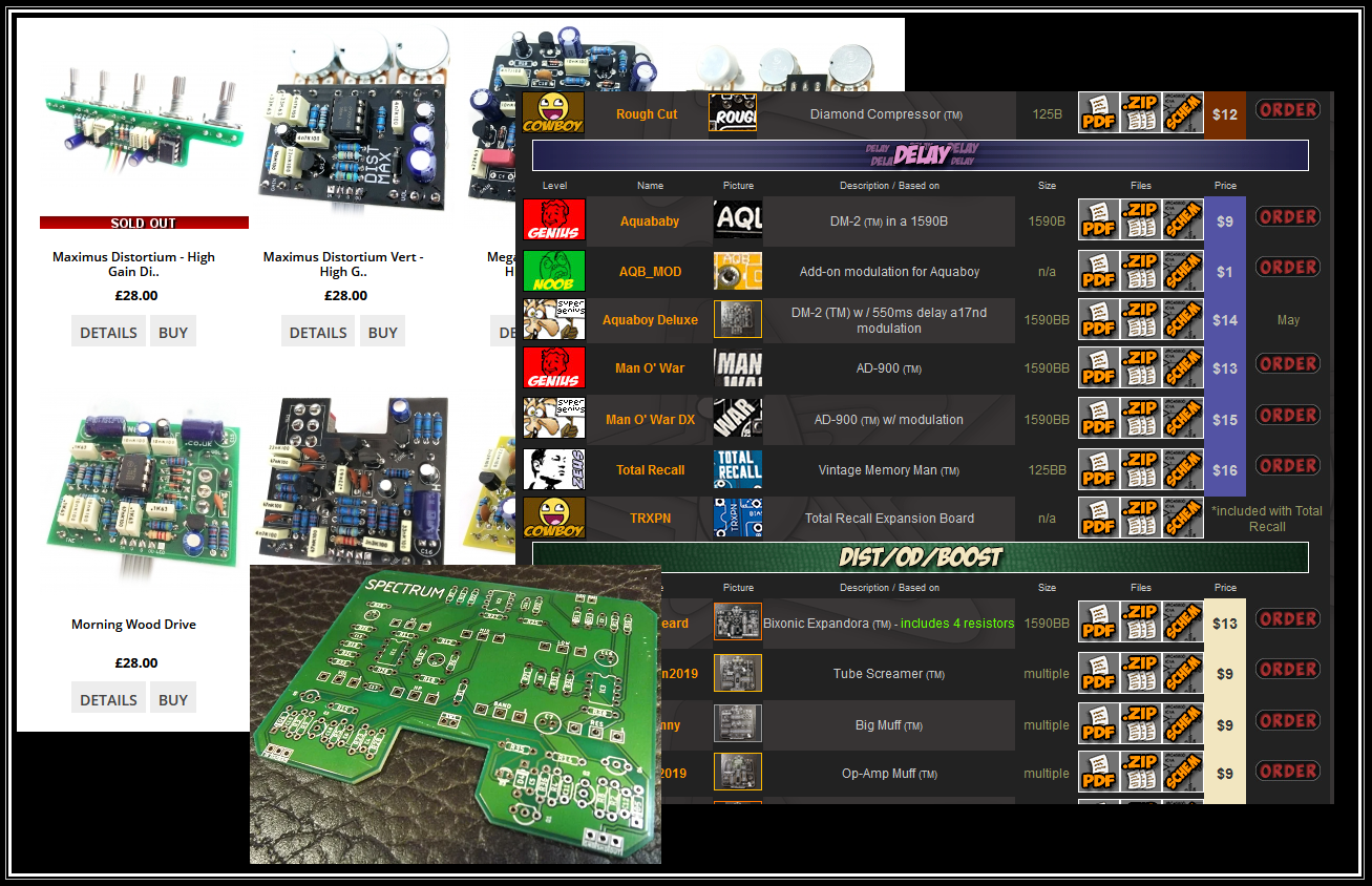 So here's a quick rundown of the pedal kit and PCB makers whose original designs, and adopted orphans that we're building pedals from: