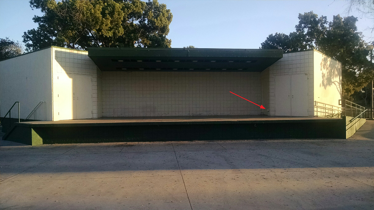 Yes, I did. Take a closer look at the first picture, the one with the bandshell. See the red arrow so cleverly drawn in there? That's where the power outlet is. Now, take a look at the picture at the very bottom of this article. I tested for power. My tester shows there is power. You no longer have an excuse as to why you can't play loud! If you live in east Long Beach or the nearby environs, go have some fun and rehearse a time or two!