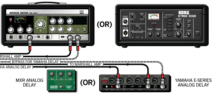 Have you found out on your own how to replicate a particular artist's sound? We have, for sure. And in fact, I have a perfect example for you. For a long time, many players wondered how Eddie Van Halen got that phaser sound in "Eruption". It's a phaser that's not only warbling in and out, like a phaser does, but it's also swelling in and out, not like a phaser does. Eddie did it by putting his MXR Phase 90 between his guitar and his amp. You'd never know it, unless you've done in-depth research, but Eddie Van Halen ended up using his 1968 Marshall Super Lead not as much as an amp, but after his mods, and hooking in a variac and lowering the voltage from the wall, the amplifier ends up acting more like a distortion pedal. Unlike most players who learn at low volumes and put the phaser after the distortion pedal (because it sounds the cleanest this way), Eddie put it before, because his amp was an amp, and not a pedal...