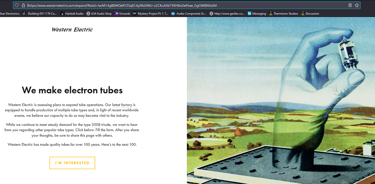 I originally started writing this article on the 22nd of March, and have reached out to a few different amp manufacturers and enthusiasts to see if they'll add their $0.02. I highly recommend you add your voice to the growing chorus and TELL WESTERN ELECTRIC TO RESUME MANUFACTURE OF MASS MARKET AMPLIFIER VACUUM TUBES!